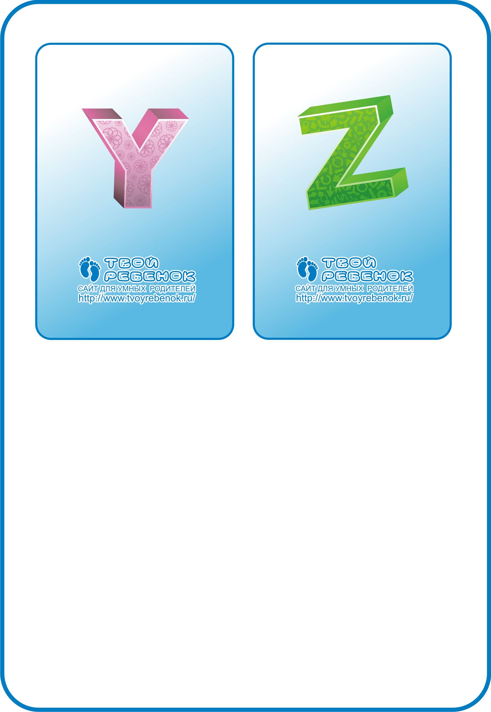 Картка із англійськими літерами Y, Z для навчання дитини англійським алфавітом