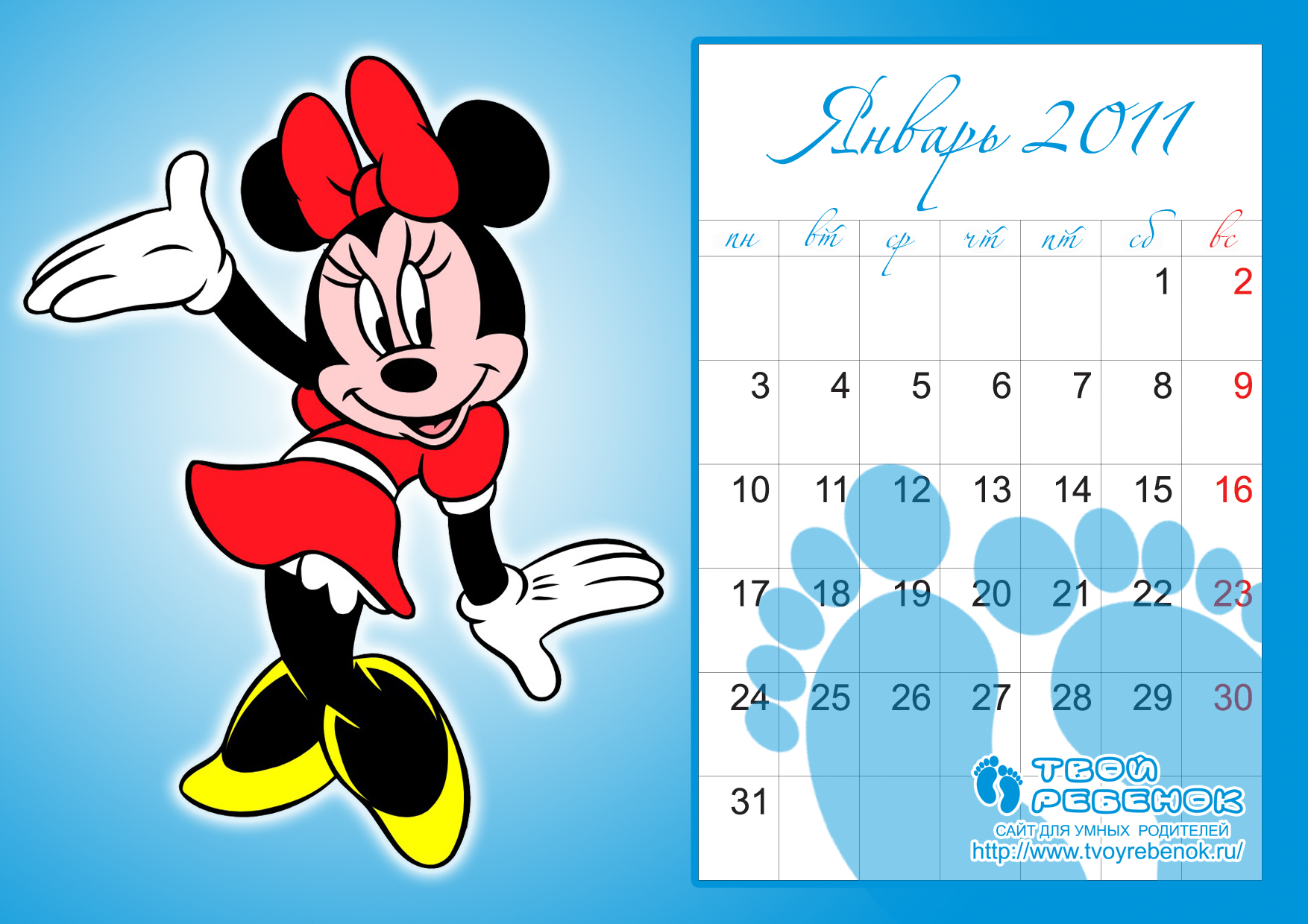 Календар для дівчинки 2011 рік. Ви можете завантажити безкоштовно календар і роздрукувати на кольоровому принтері.