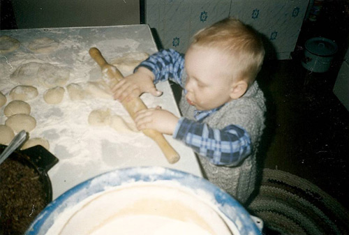 Коли ми приїжджаємо в село, і випадає можливість просто повалятися вранці в пастелі, син куховарить нам шаньги, причому з вечора під його чуйним керівництвом бабуся Валя заводить діжу. Один раз коли бабуся заводила діжу і вже збиралася засипати борошно, тому що всі інші інгредієнти вже були покладені син сказав "Баба, а дріжджі - то забула покласти!". Ось так син врятував діжу і наші ранкові шаньги. Так що не тільки ми, але і наш син влаштовує нам відмінні вихідні.