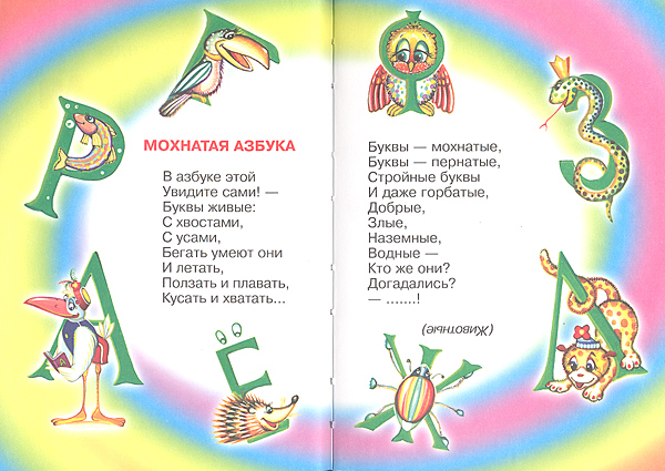 До складу книги увійшли твори "Волохата абетка", "Лелека", "Бізон", "Верблюд", "Гадюка", "Дикобраз","Єхидна", "Їжачок", "Жираф", "Зебу", "Індик", "Кабан"...