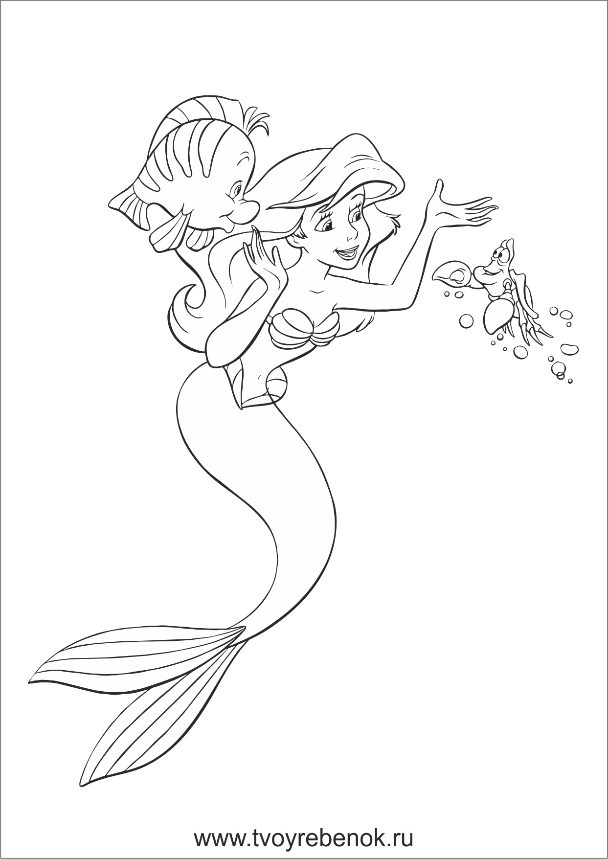 Розмальовка русалочка Аріель - безкоштовно на дитячому сайті Твій ребенок.ру! Клацніть на зображення, збережіть його і роздрукуйте на принтері!