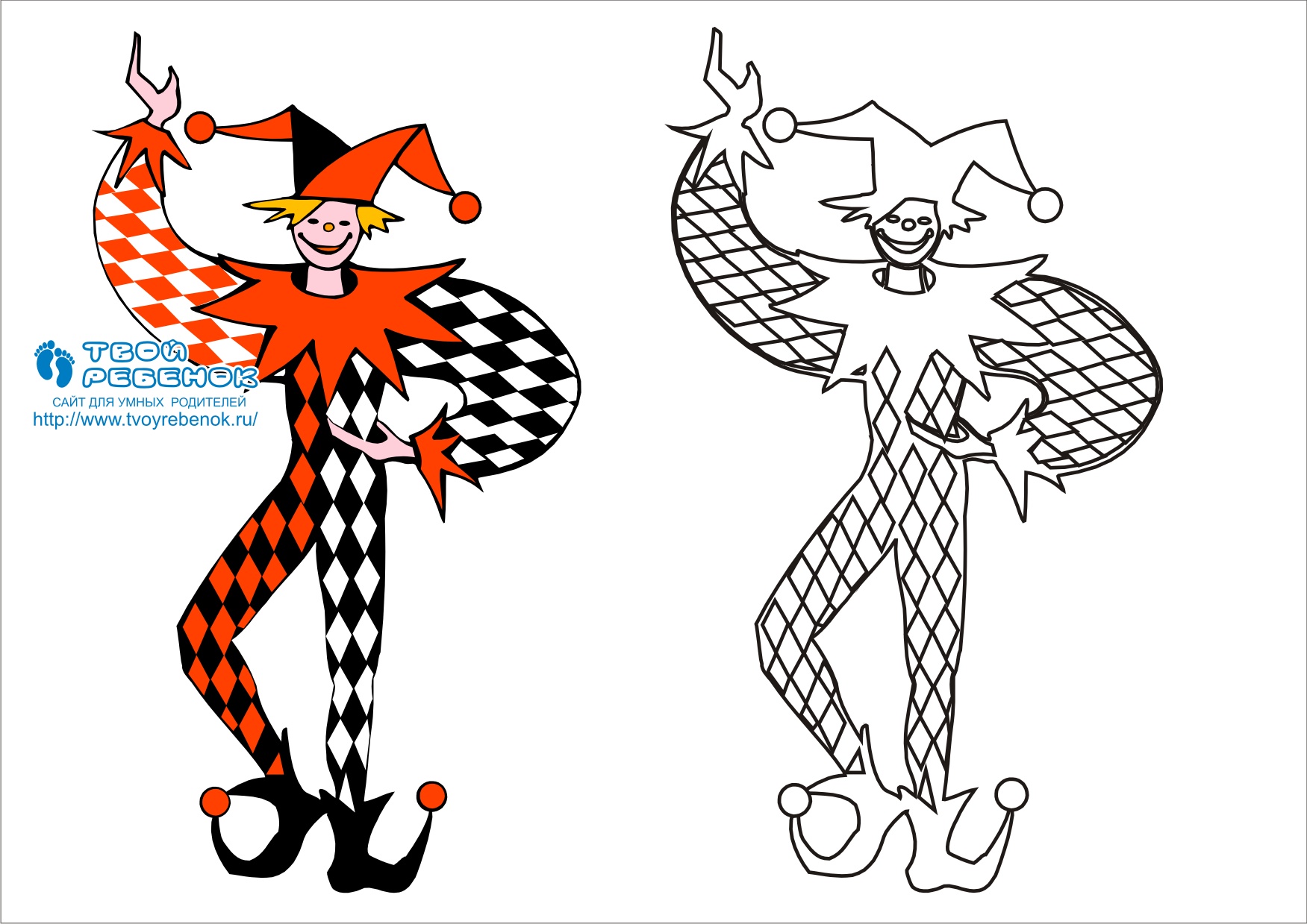 Клоун, розмальовка для безкоштовного скачування. Скачайте розмальовку та роздрукуйте її на кольоровому принтері. |