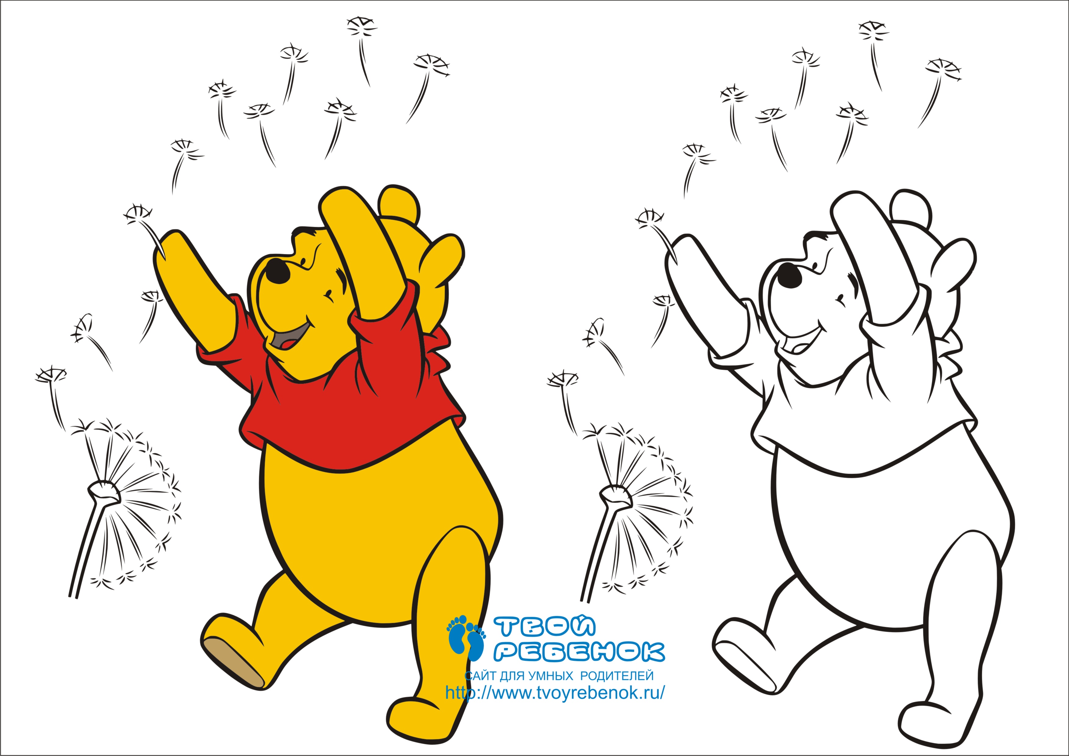 Розмальовка для дітей "Вінні Пух дме на квітку". Ви можете завантажити цю розмальовку безкоштовно і роздрукувати її на кольоровому принтері. |