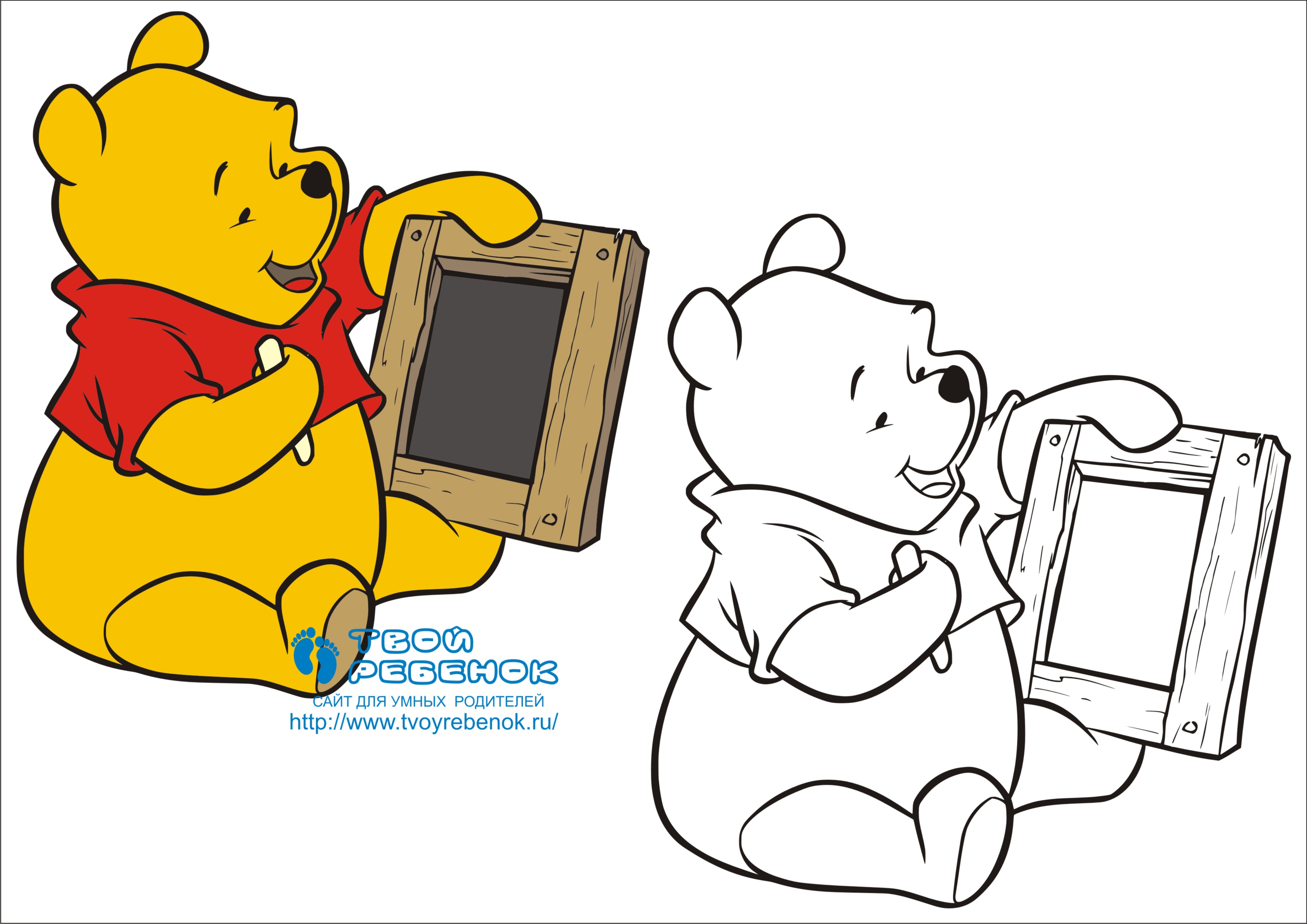 Розмальовка для дітей "Вінні Пух пише крейдою на дошці". Ви можете завантажити цю розмальовку безкоштовно і роздрукувати її на кольоровому принтері. |