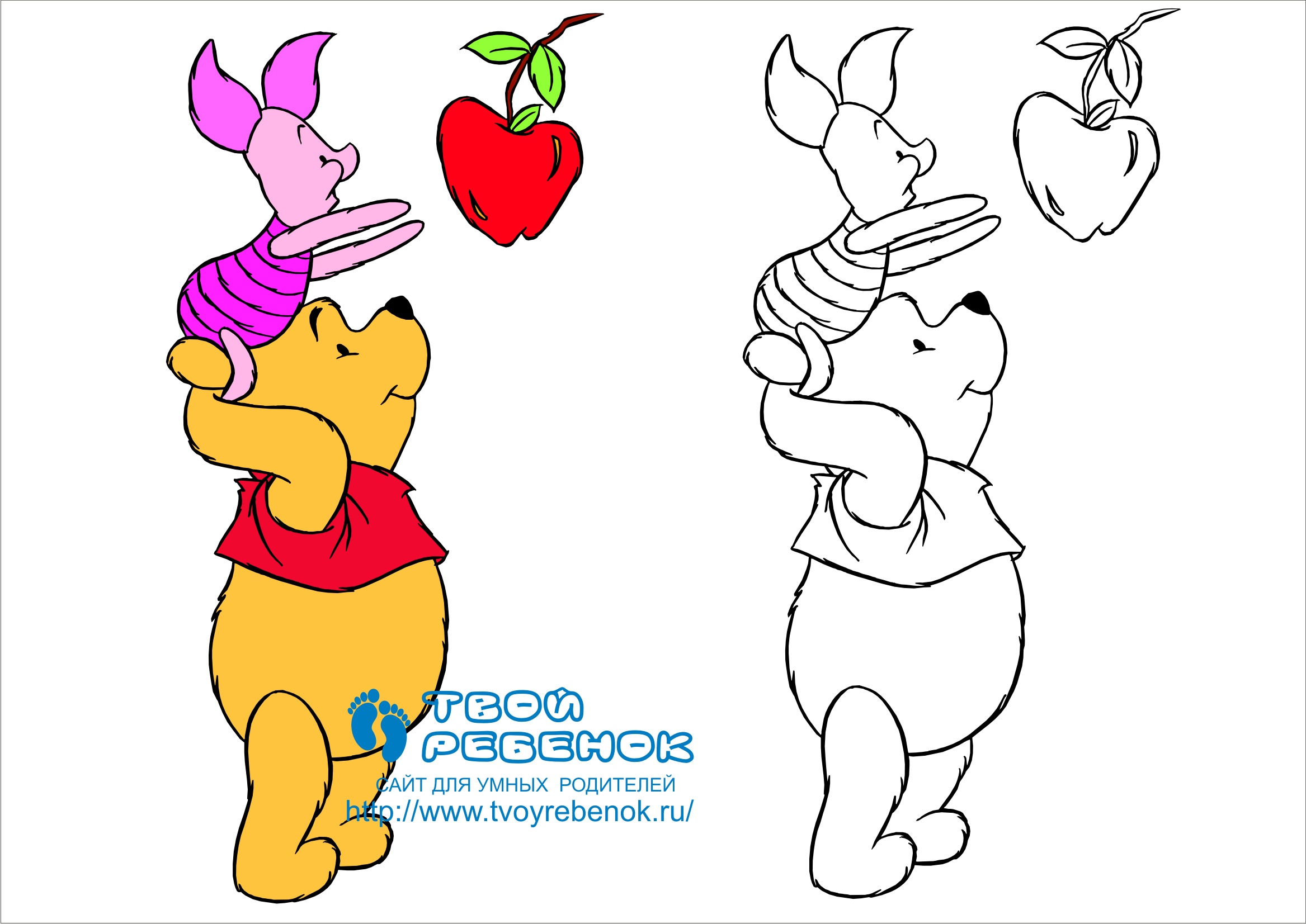 Розмальовка для дітей "Вінні Пух і Пяточок". Ви можете завантажити цю розмальовку безкоштовно і роздрукувати її на кольоровому принтері. |