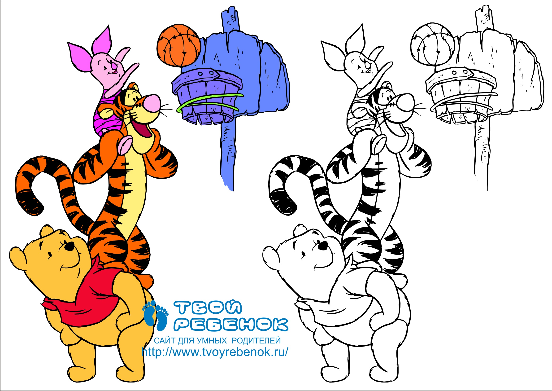 Розмальовка для дітей "Вінні Пух баскетболіст". Ви можете завантажити цю розмальовку безкоштовно і роздрукувати її на кольоровому принтері. |