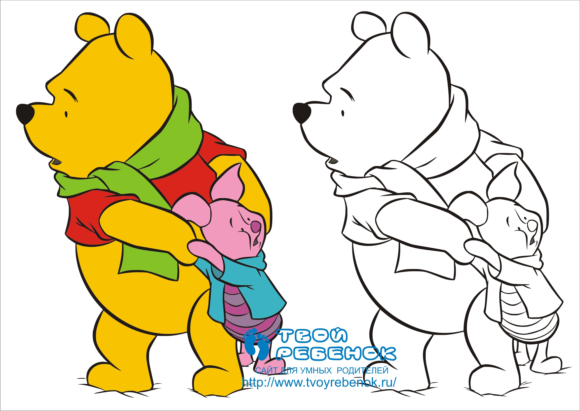 Розмальовка для дітей "Вінні Пух з Пяточком". Ви можете завантажити цю розмальовку безкоштовно і роздрукувати її на кольоровому принтері. |