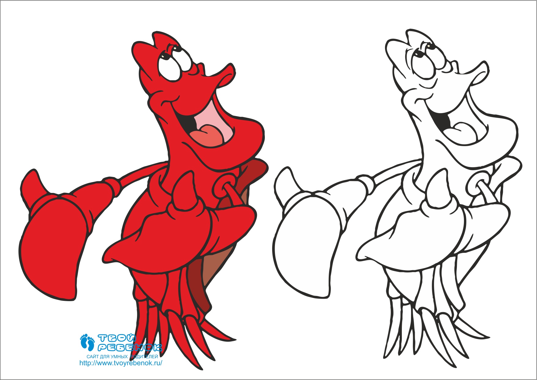 Розмальовка краб Себастьян - безкоштовно на дитячому сайті Твій ребенок.ру! Клацніть на зображення, збережіть його і роздрукуйте на принтері! |