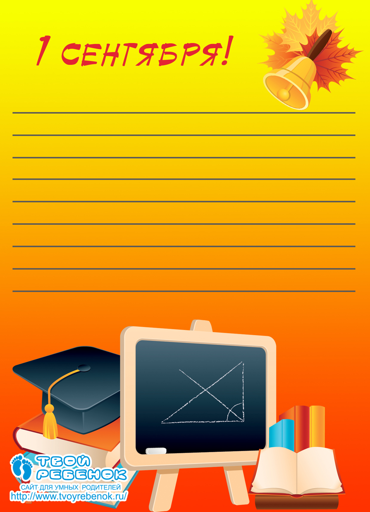 Листівка дитині на 1 вересня, яку можна завантажити безкоштовно на дитячому сайті Твоя дитина і роздрукувати на принтері.