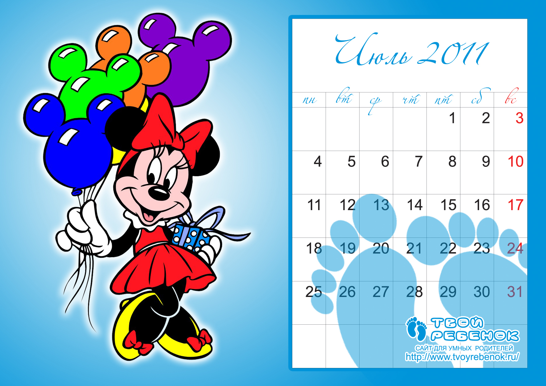 Календар для дівчинки 2011 рік. Ви можете завантажити безкоштовно календар і роздрукувати на кольоровому принтері.