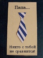 - Якщо тато - офісний працівник, з відповідною папери можна вирізати краватка (як це показано на картинці), так само як символ, що вказує на діяльність папи можуть бути: гайковий ключ або викрутка (нескладні, але дуже яскраві форми), автомобіль, зброю...