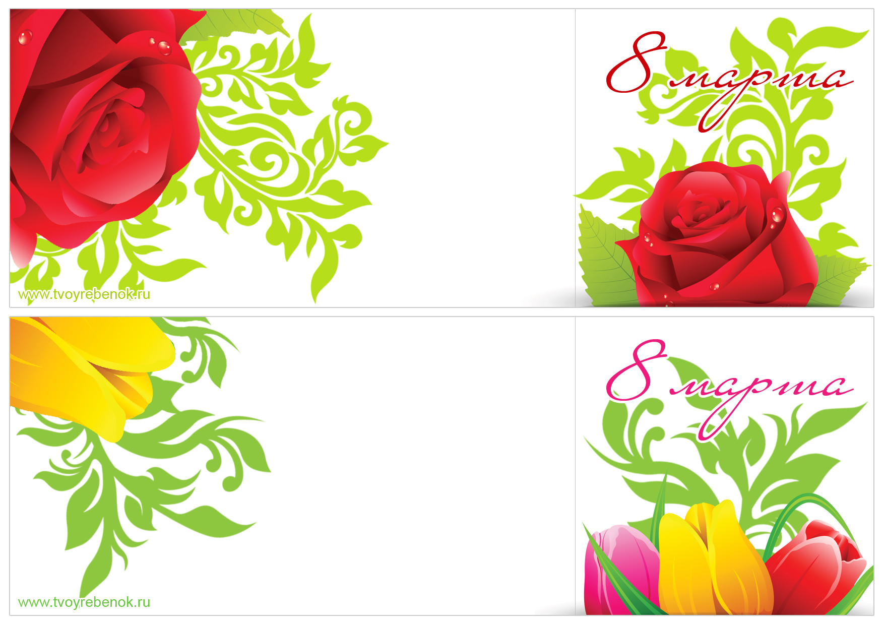 Кольорові листівки на 8 березня. Ви можете завантажити дану листівку безкоштовно і роздрукувати її на кольоровому принтері.