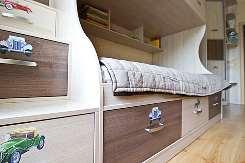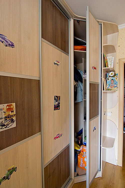 ТАЙНИЧКИ. Над ліжком старшого сина є дуже зручні полички. Це його тайничок. Туди він складає всі свої скарбнички, секретики якісь. А ще дуже зручно, що шафа поруч, і коли я йому на ніч читаю книжку, кладу її наверх.