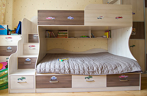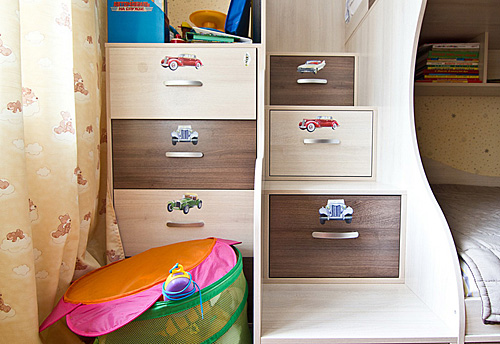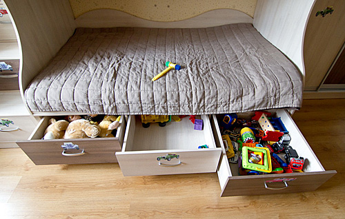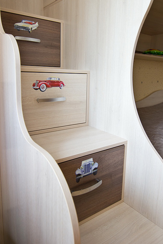 ЯЩИКИ. Всього в конструкції 11 ящиків, які розташовані і під ліжком, і в комоді, і, що дуже класно, в сходинках сходів. У них міститься все що завгодно - раджу.