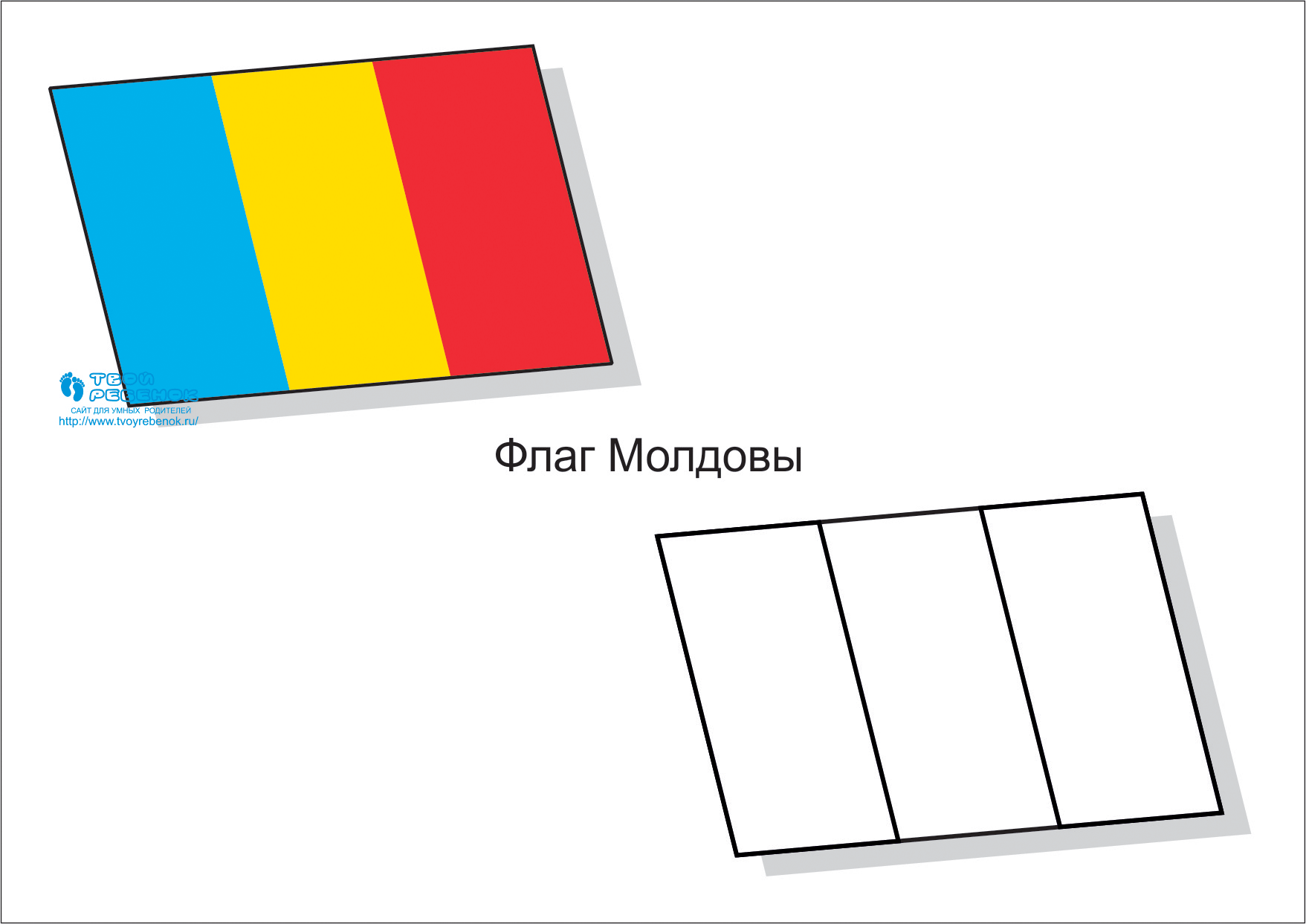 Розмальовка прапор Молдови, яку можна завантажити безкоштовно на дитячому сайті Твій ребенок.ру! Розфарбовуючи запропоновану розмальовку, дитина розширить кругозір і запам'ятає кольору молдавського прапора! |