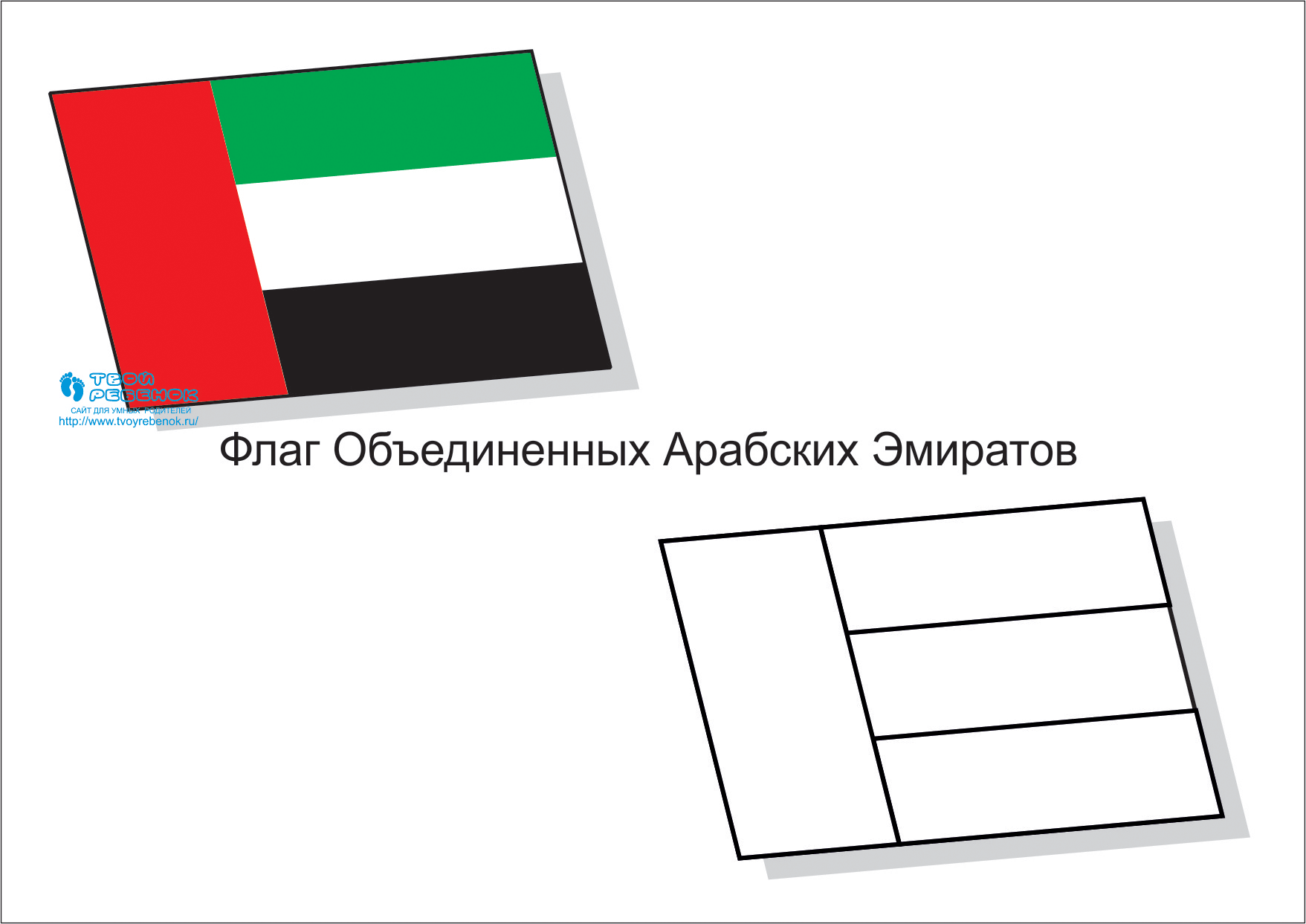 Розмальовка прапор ОАЕ, яку можна завантажити безкоштовно на дитячому сайті Твій ребенок.ру! Розфарбовуючи запропоновану розмальовку, дитина розширить кругозір і запам'ятає кольору представленого прапора! |