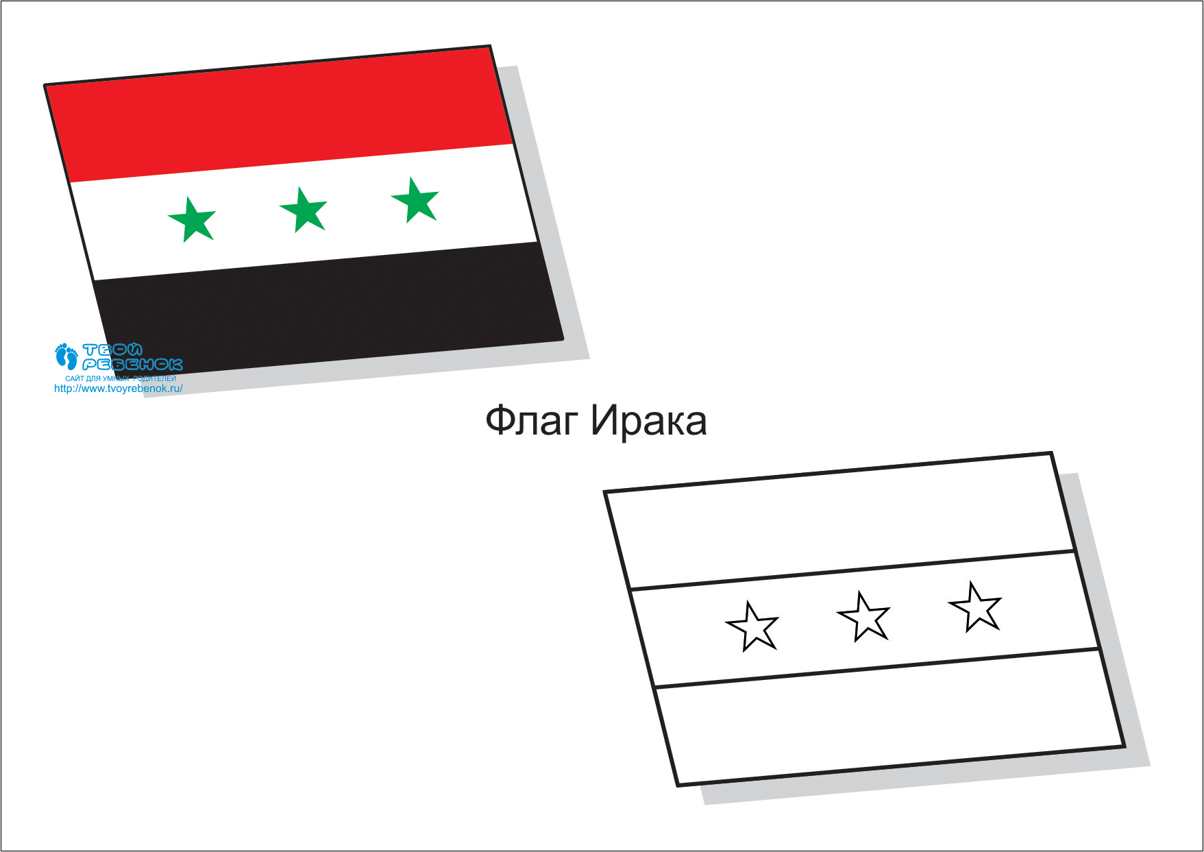 Розмальовка прапор Іраку, яку можна завантажити безкоштовно на дитячому сайті Твій ребенок.ру! Розфарбовуючи запропоновану розмальовку, дитина розширить кругозір і запам'ятає кольору іракського прапора! |