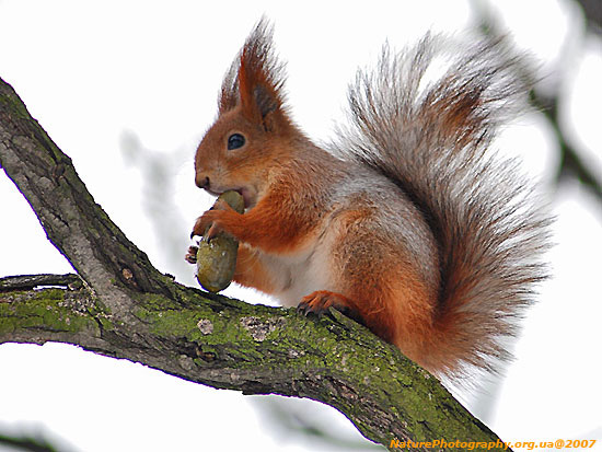Білки дуже люблять насіння. Тверду шкаралупу горіхів і фісташок вони легко розгризають потужними щелепами.