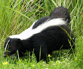 Володіє досить оригінальним засобом захисту: деякі його залози виділяють рідину з огидним запахом, який відлякує будь-якого хижака. Якщо хижак упирається в переслідуванні скунса, він здатний порснути цією рідиною йому в морду, остаточно змусивши відмовитися від нападу.