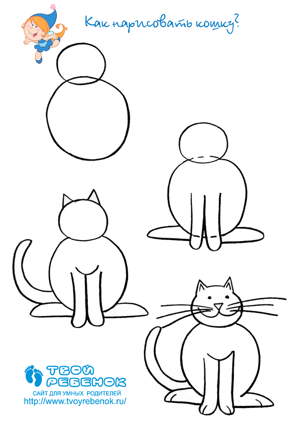 Як намалювати кішку простим олівцем поетапно? Подивіться на цей простий схематичний малюнок кішки, який дозволити натренувати руку дитини для письма, а також буде сприяти розвитку у нього абстрактного мислення, посидючості, акуратності.
