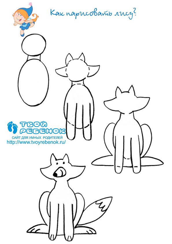 Як намалювати лисицю простим олівцем поетапно? Подивіться на простий схематичний малюнок лисиці, який дозволити натренувати руку дитини для письма, а також буде сприяти розвитку у нього абстрактного мислення.
