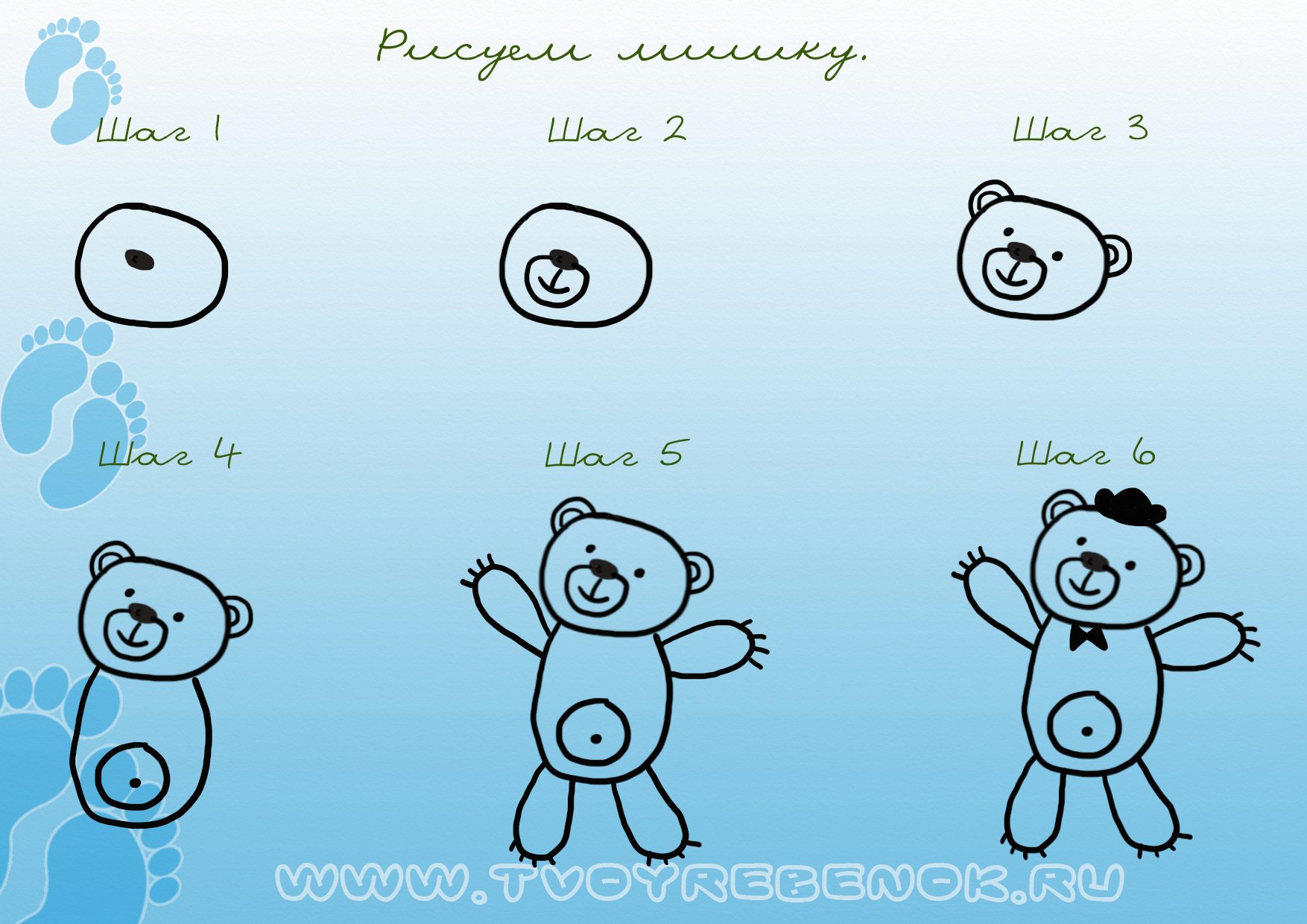 Як намалювати ведмедя? Пропонуємо вивчити прості і зрозумілі кроки для малювання ведмедики, які будуть зрозумілі навіть дошкільнятам. Малюємо ведмедя разом з сайтом Твоя дитина олівцем і поетапно!