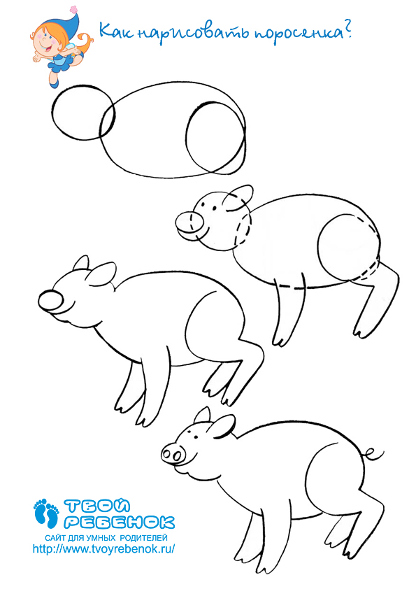 Як намалювати порося простим олівцем? Нижче представлений схематичний малюнок поросяти, який дозволити натренувати руку дитини для письма, а також буде сприяти розвитку у нього абстрактного мислення.