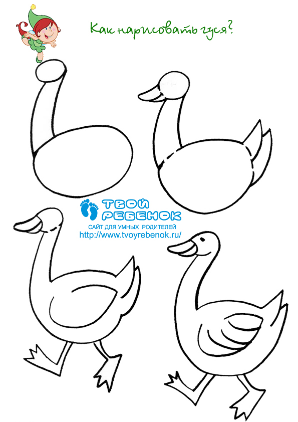 Як намалювати гусака простим олівцем? Подивіться на простий схематичний малюнок гусака, який дозволити натренувати руку дитини для письма, а також буде сприяти розвитку у нього абстрактного мислення.