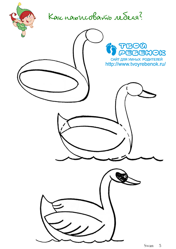 Як намалювати лебедя олівцем? Пропонуємо вашій увазі простий схематичний малюнок лебедя, який дозволити натренувати руку дитини для письма, а також буде сприяти розвитку абстрактного мислення у малюка.