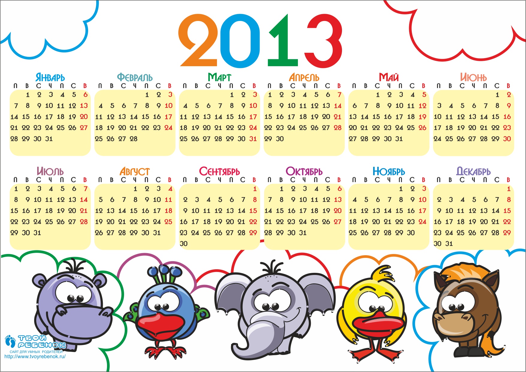 Скачайте безкоштовно авторський календар для дітей на 2013 рік на сайті Твій ребенок.ру! Роздрукуйте його на кольоровому принтері і подаруйте дитині! |