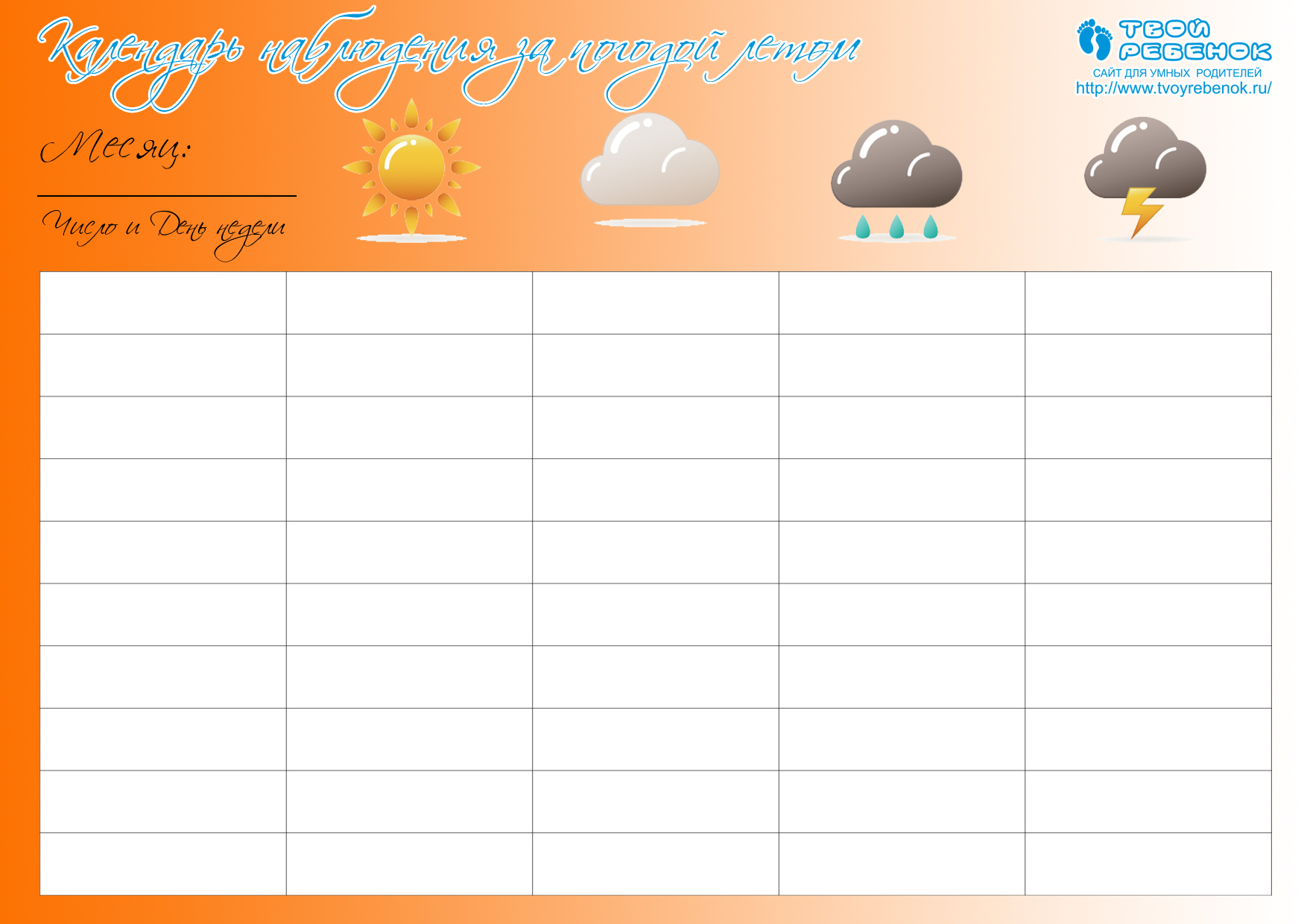 Сайт "Твій дитина" пропонує вам завантажити безкоштовно нижче представлений календар погоди для школяра і роздрукувати на кольоровому принтері.