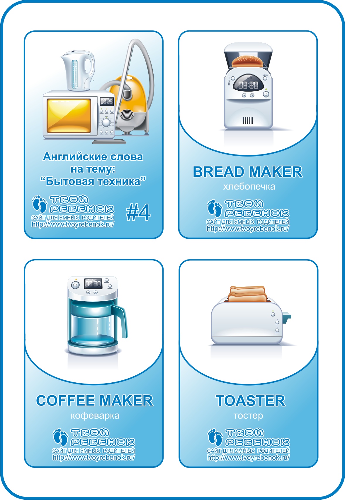 Картинки для уроків англійської мови на тему Техніка - скачайте безкоштовні матеріали, підготовлені дизайнером сайту "Твій ребенок.ру"! Клацніть на зображення, збережіть його, надрукувати на кольоровому або чорно-білому принтері. Формат матеріалу - А4.