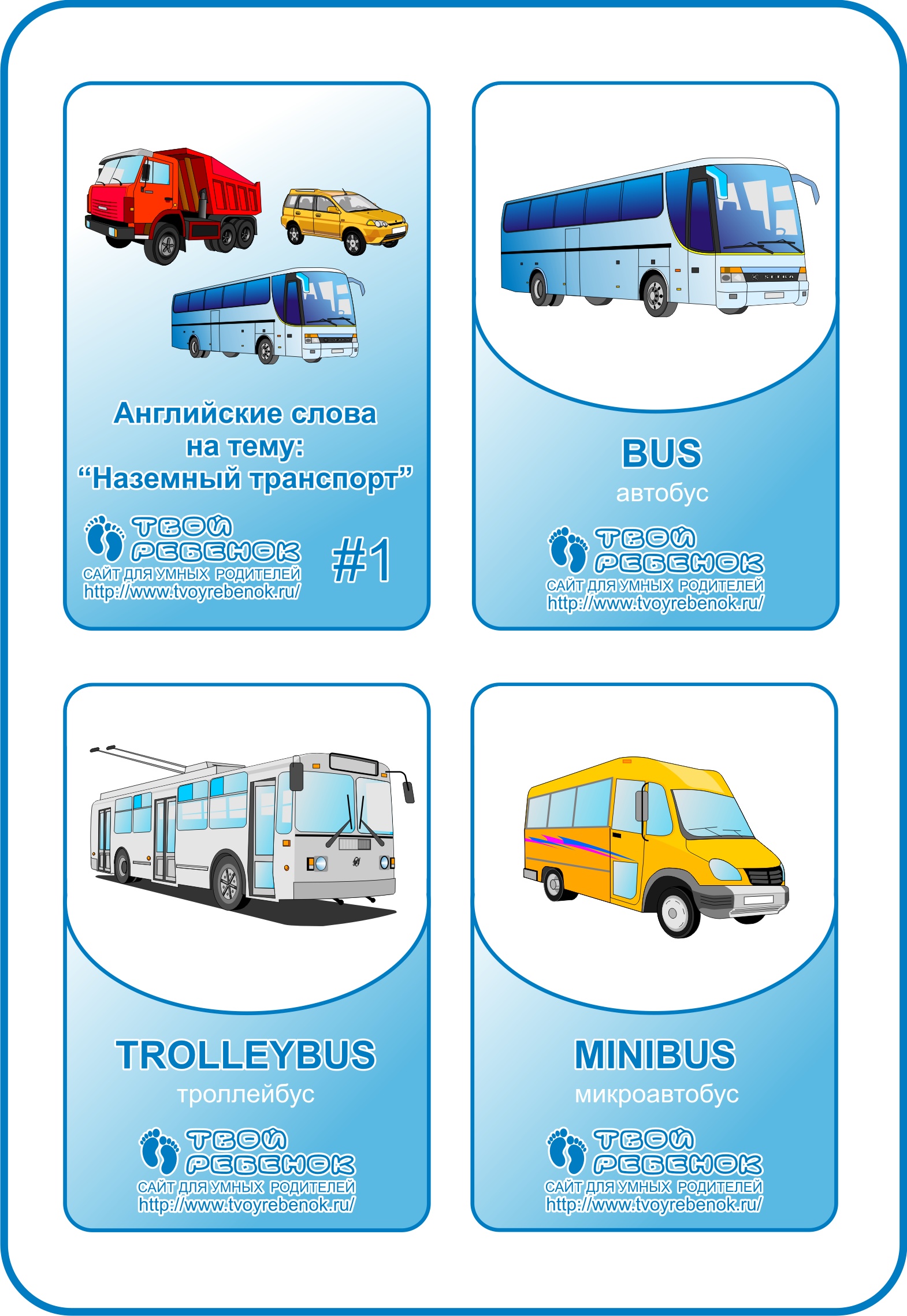 У розділі представлені картки для запам'ятовування англійських слів на тему Транспорт