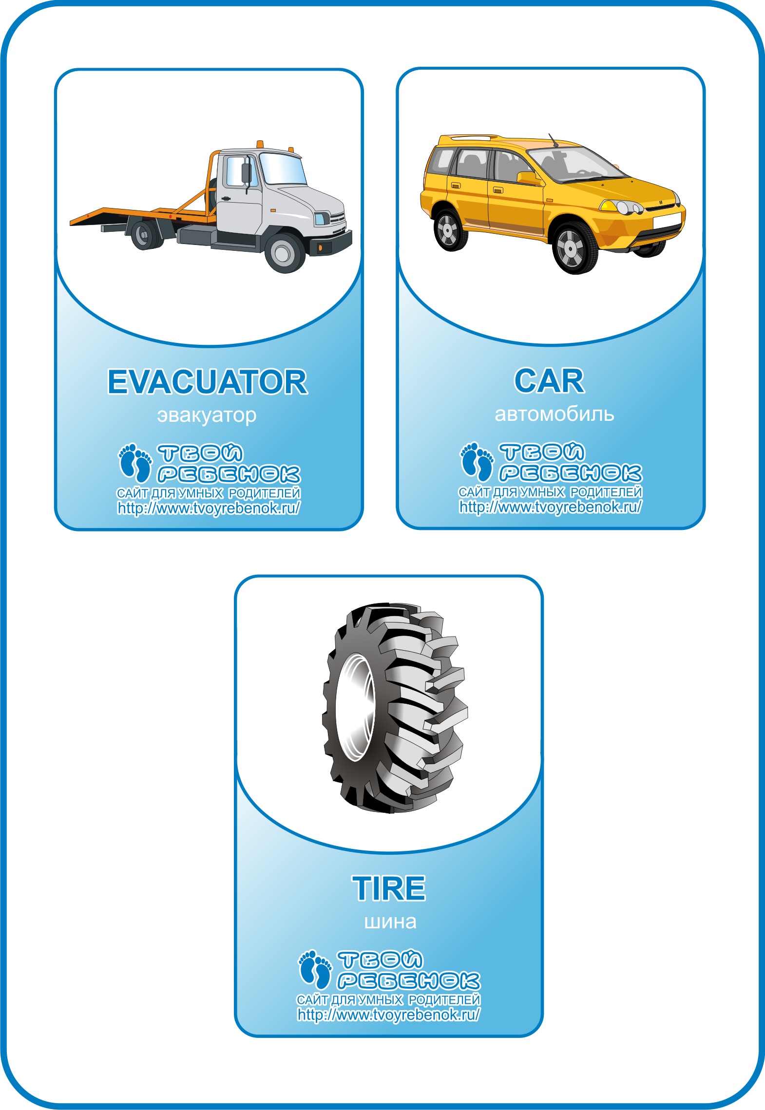 У розділі представлені картки слів англійської мови. Картки підготовлені дизайнером сайту "Твій ребенок.ру"