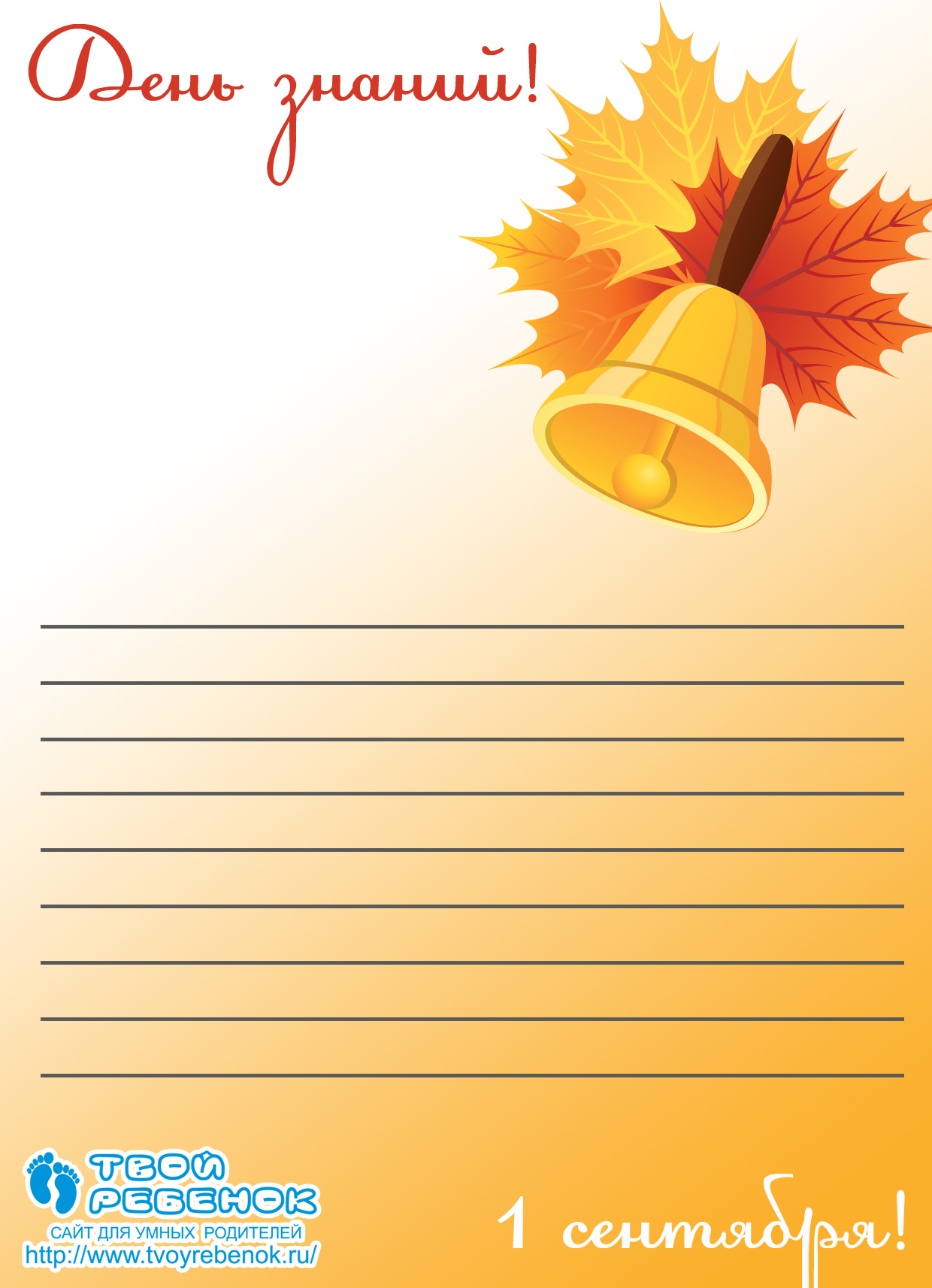 Красиві шкільні листівки для першокласників, які можна завантажити безкоштовно на дитячому сайті Твоя дитина і роздрукувати на принтері.