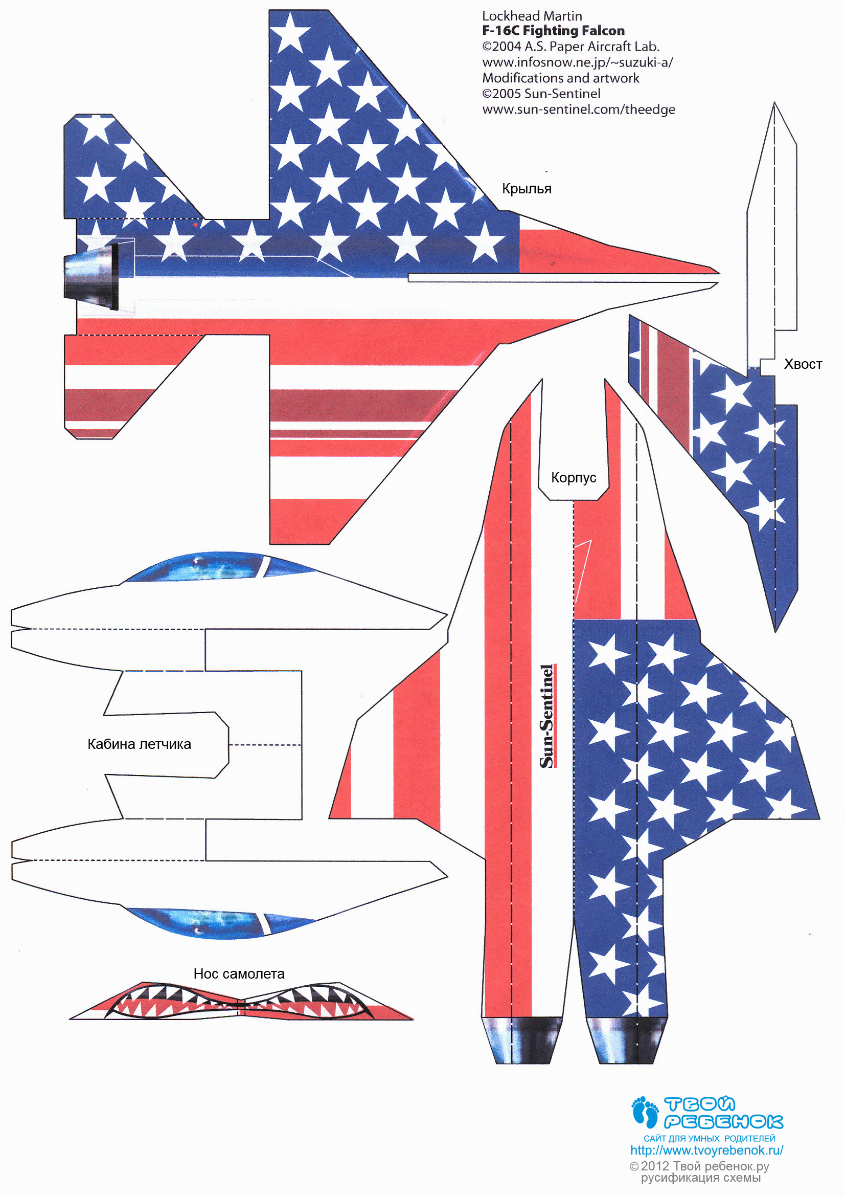 Матеріал переведений спеціально для сайту "Твій ребенок.ру", копіювання дозволяється за умови встановлення прямого зворотнього посилання на сайт "Твій ребенок.ру" і збереження логотипу проекту на макеті літака та інструкції щодо його складання.