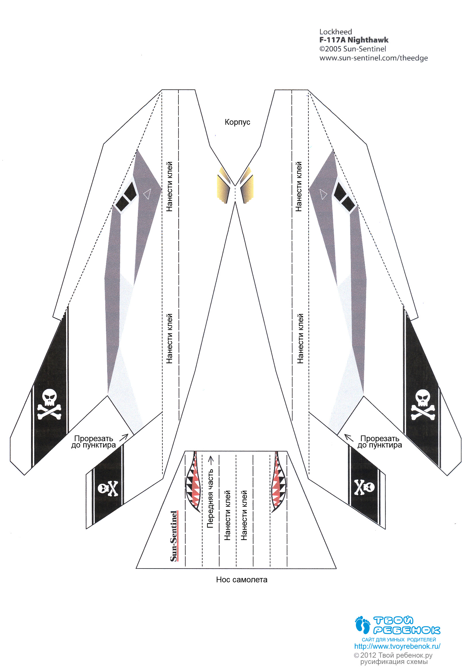 Матеріал переведений спеціально для сайту "Твій ребенок.ру", копіювання дозволяється за умови встановлення прямого зворотнього посилання на сайт "Твій ребенок.ру" і збереження логотипу проекту на макеті літака та інструкції щодо його складання.