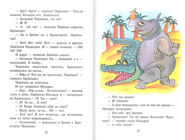 Казкові історії, з яких ми дізнаємося, що носороги не глухі до мистецтва, що Заєць знайшов іншу Африку, а також які наснилися сни Великій Черепасі. Левеня і Черепаха звичайно ж співають свою відому пісеньку.