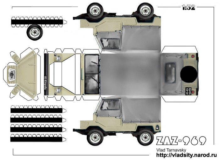 Маленький автомобіль з паперу - захоплююча модель для складання автомобіля! Роздрукуйте схему на кольоровому або чорно-білому принтері, зігніть і склейте. Модель виконана в масштабі 1:32 і дуже реалістична.