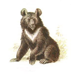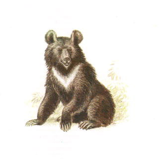 Білогрудий ведмідь. У нього чорна шкура зі світлою смугою на грудях, нагадує комір. Живиться рослинами, ягодами, фруктами, а так само безхребетними і дрібними ракоподібними, яких ловить в річках. Живе переважно в лісах, де їжі для нього більше ніж достатньо, і де він спритно лазить по деревах.