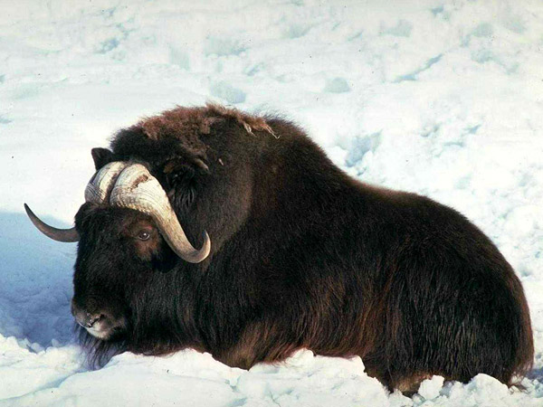Сніговий баран більший звичайного барана, його шкіра темного кольору, і у нього довгі виті рогу. Снігові барани влаштовують такі гучні битви рогами, що їх можна чути здалеку.
