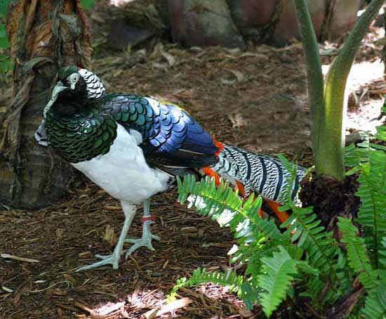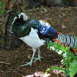Алмазний фазан. У нього барвисте оперення і довгий хвіст. Живе в горах на висоті 2 000 - 3 000 метрів в густих заростях бамбука, нирками якого живиться.