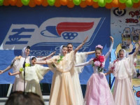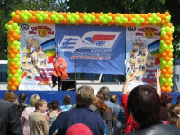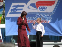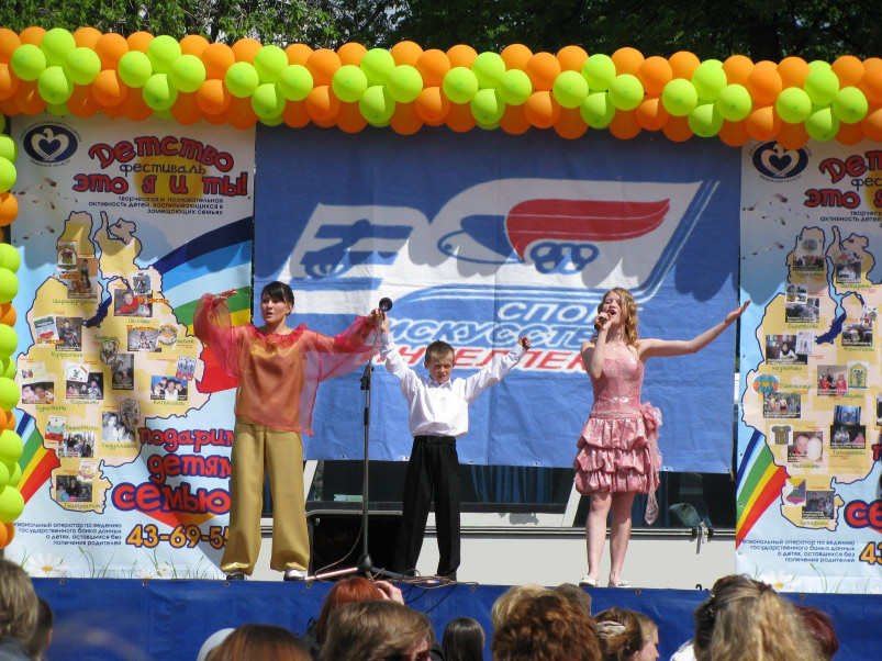 На концертному майданчику біля Цирку г.Тюмени юні артисти - діти дитячих будинків.