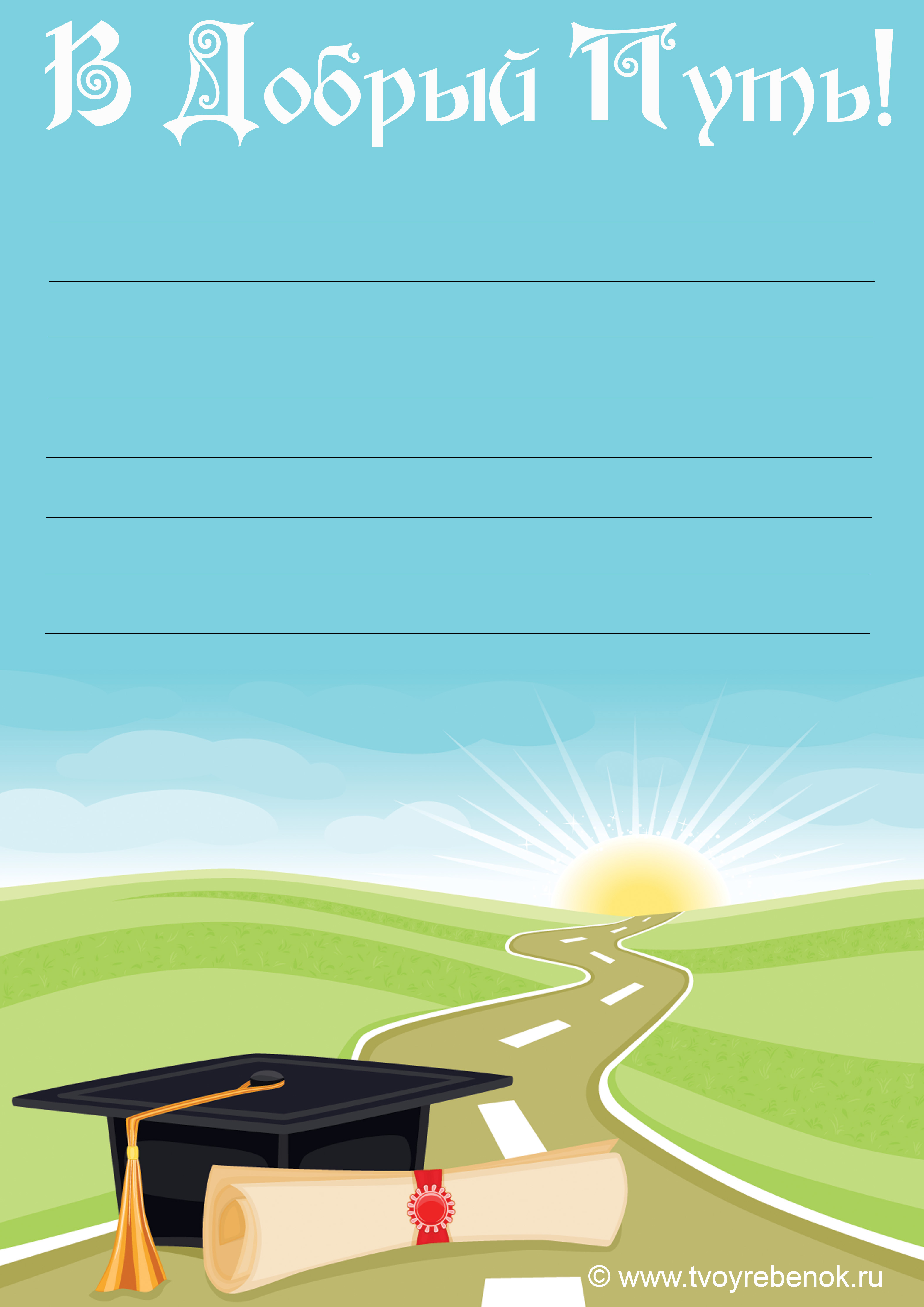 Листівка із закінченням школи, яку можна завантажити на сайті Твій ребенок.ру безкоштовно і роздрукувати на кольоровому принтері!
