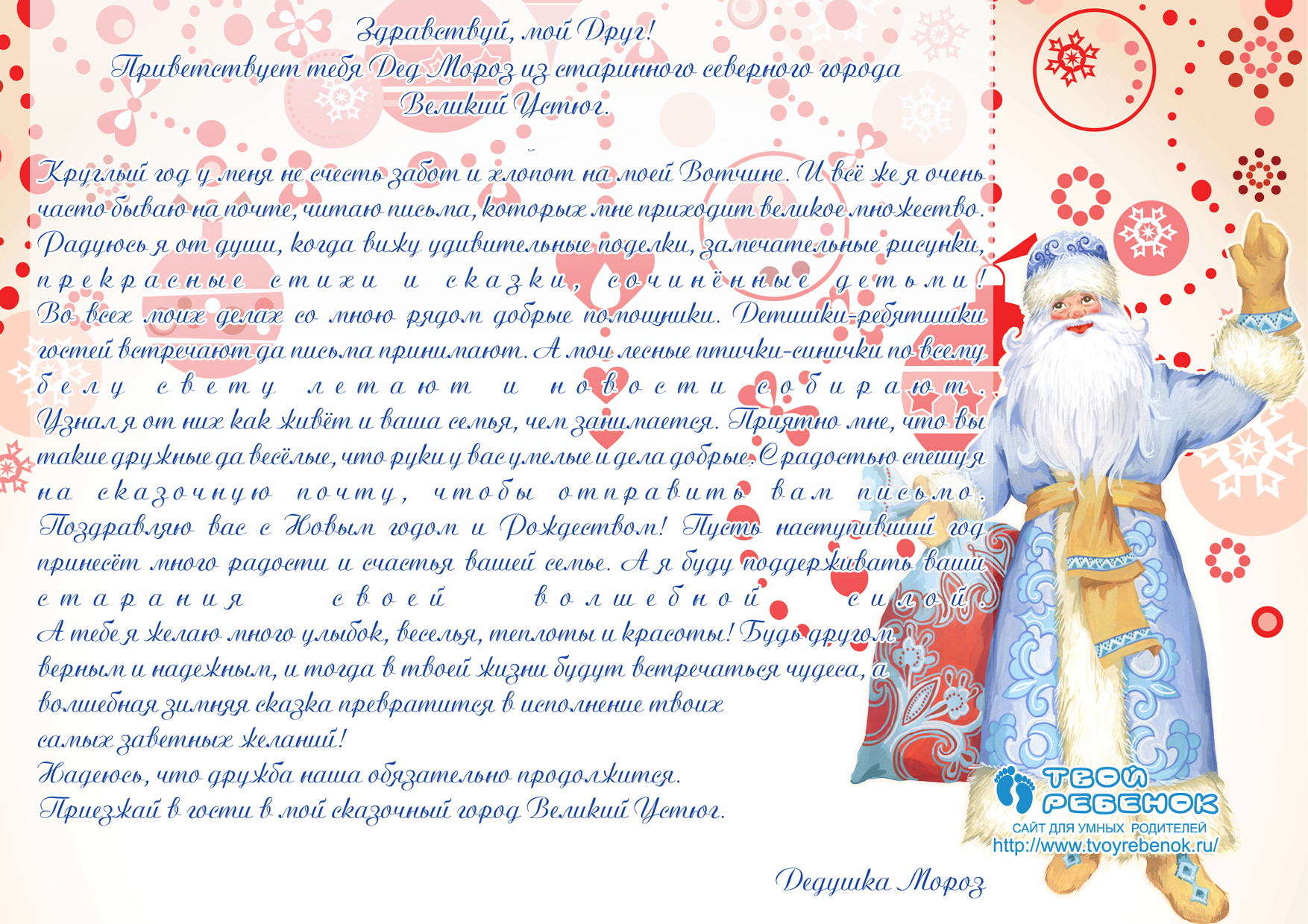 Лист від Діда Мороза для хлопчика/дівчинки