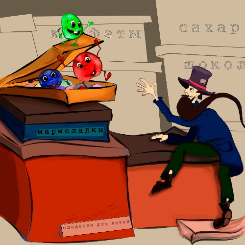 Обов'язкове пояснення: казка у віршах про те, як злодій пробрався в магазин, щоб з'їсти мармеладкі. Але не тут-то було!! Не хочуть мармеладкі, щоб злодюжка їх з'їв - до дітей хочуть!