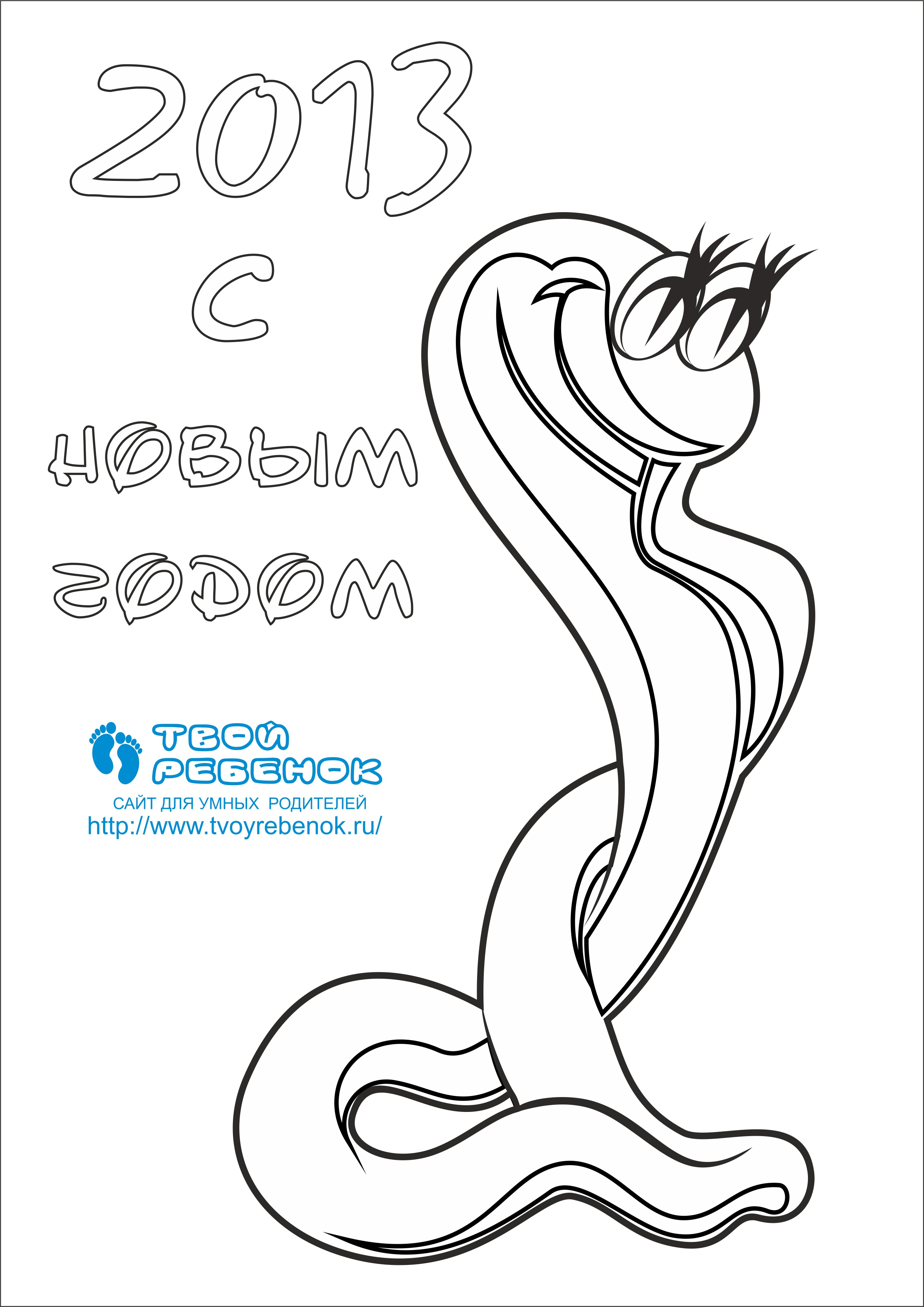 Розмальовка на Рік Змії від дитячого сайту Твій ребенок.ру! Ви можете завантажити її безкоштовно - клікніть на нього, збережіть і роздрукуйте на принтері! |