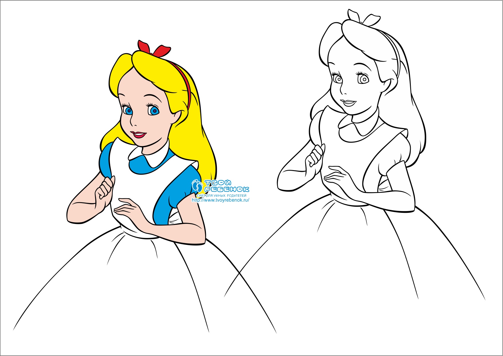 Розмальовка Аліса - безкоштовно на дитячому сайті Твій ребенок.ру! Клацніть на зображення, збережіть його і роздрукуйте на принтері!