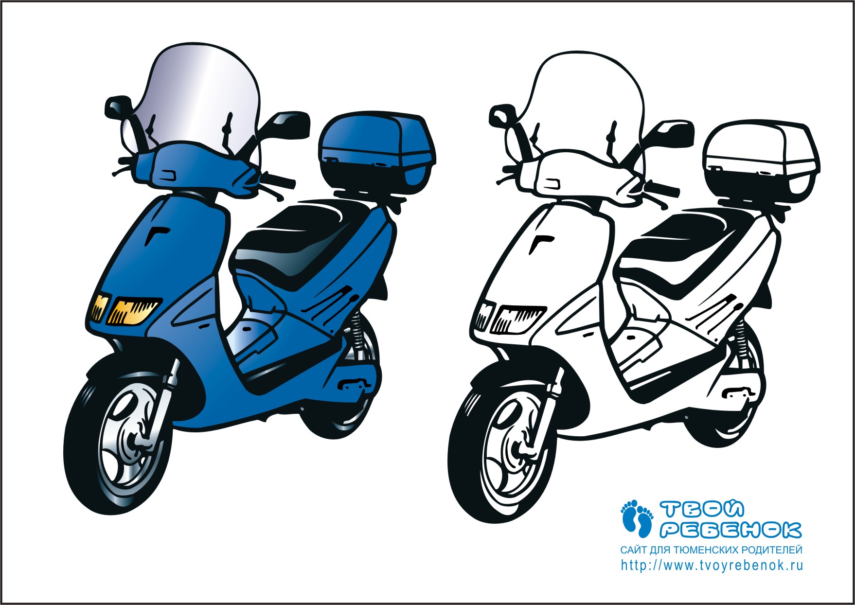 Розмальовка скутер для дітей. Скачайте розмальовку та роздрукуйте її на кольоровому принтері. Ви можете завантажити цю розмальовку безкоштовно. |