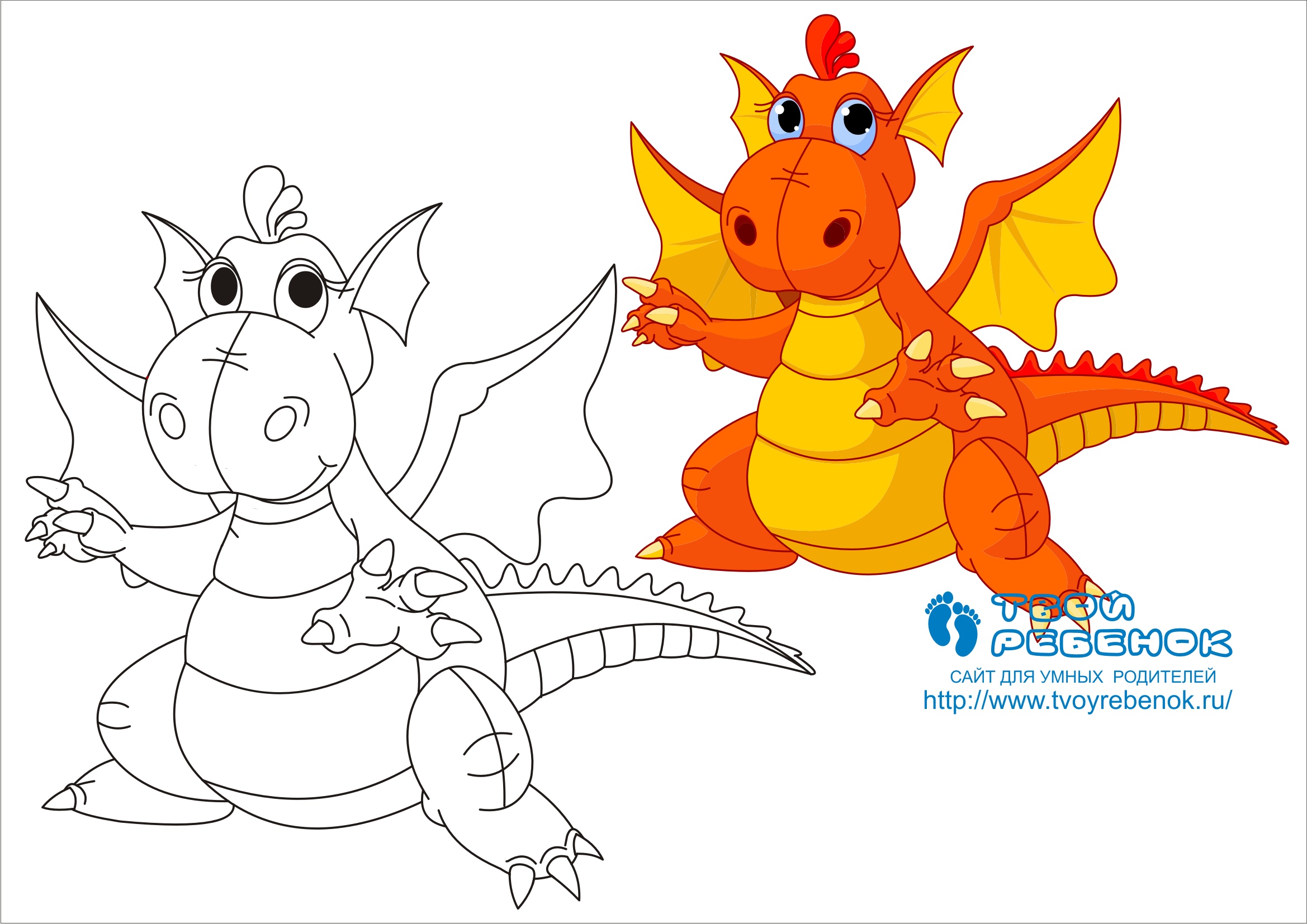 Розмальовка для дітей Дракон. Ви можете завантажити цю розмальовку безкоштовно і роздрукувати її на кольоровому принтері.